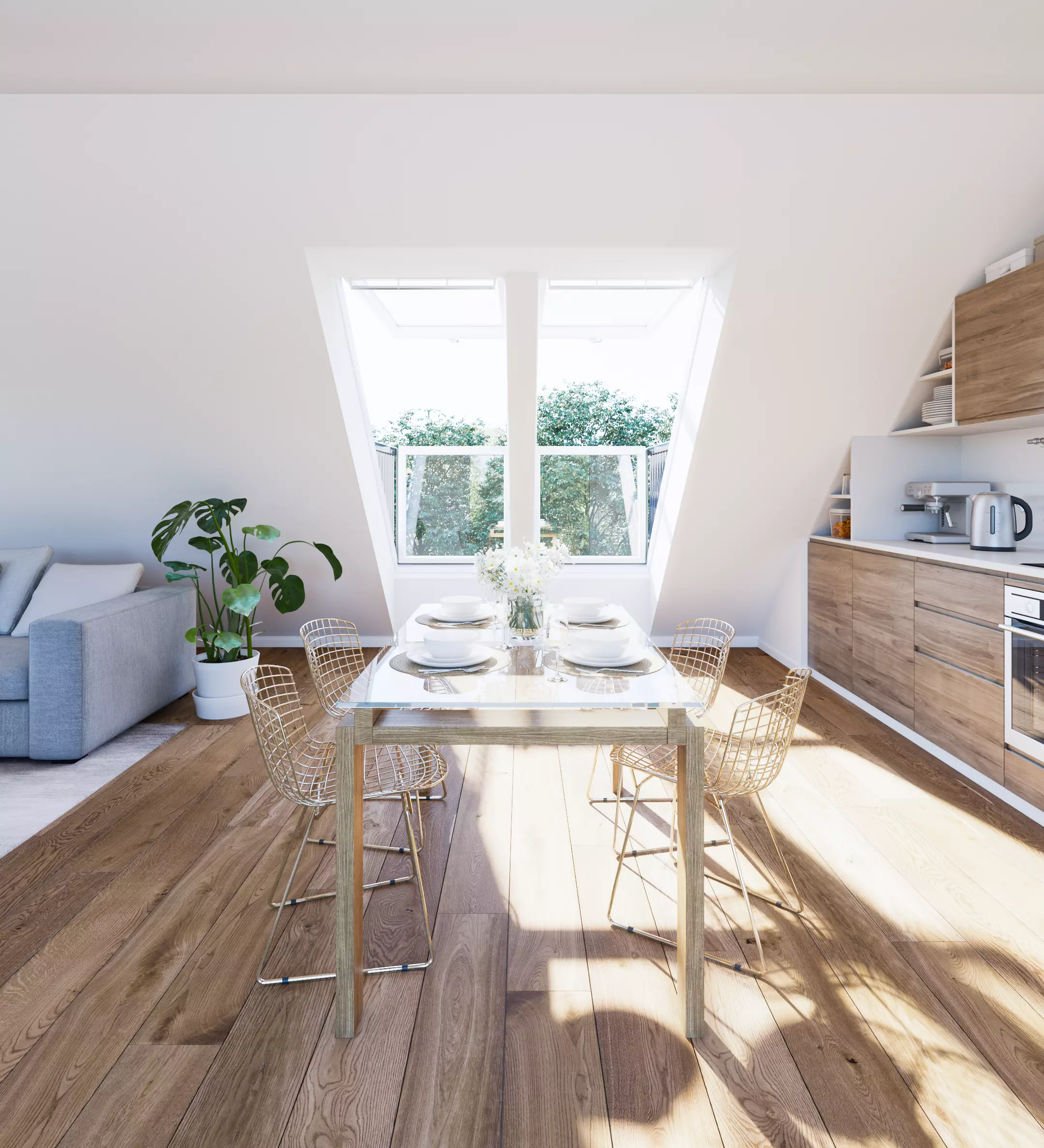 Transformeer jouw woning zodat het voelt alsof je buiten bent met het VELUX balkonvenster. Het innovatieve balkon zorgt direct voor meer ruimte, daglicht en frisse lucht in je woning. Het bestaat uit een uitzettuimelvenster en een uitzetbaar balkonelement dat zich uitvouwt tot een glazen balkon met een elegante balustrade.