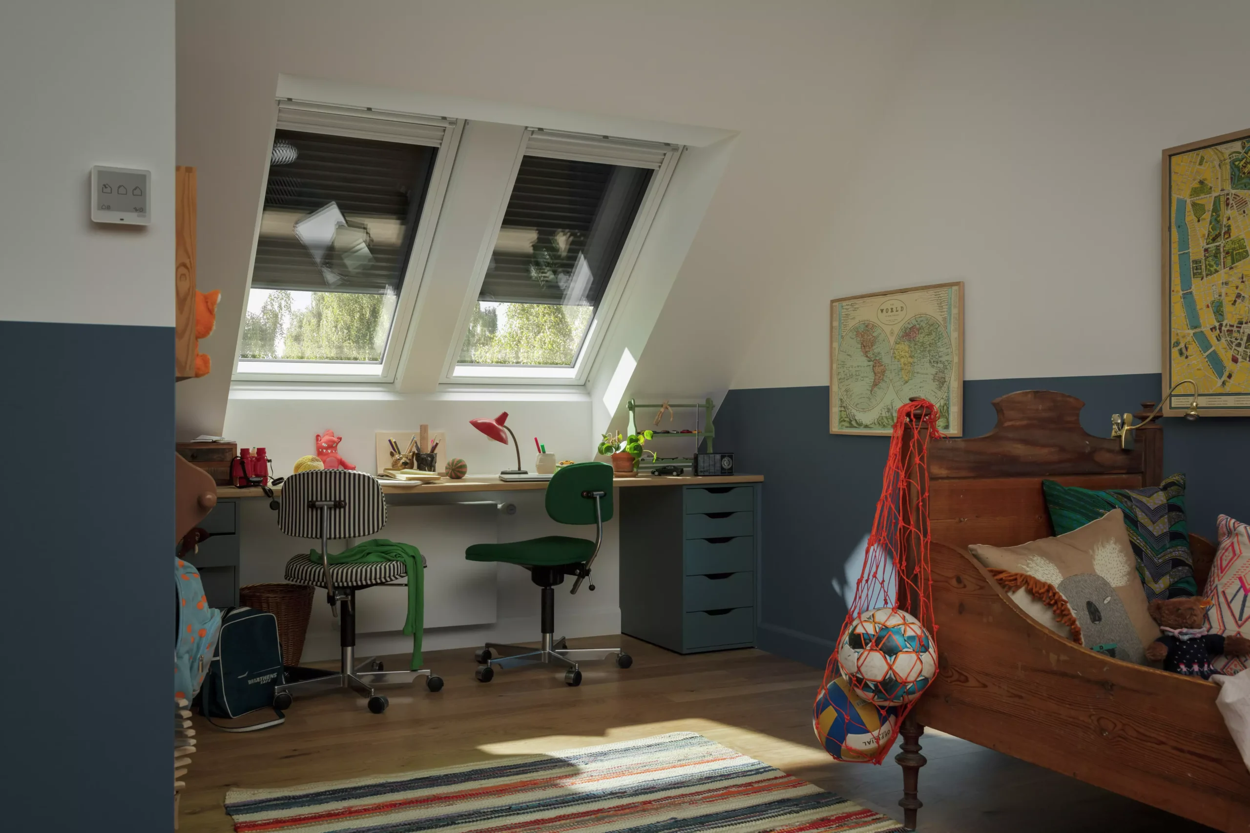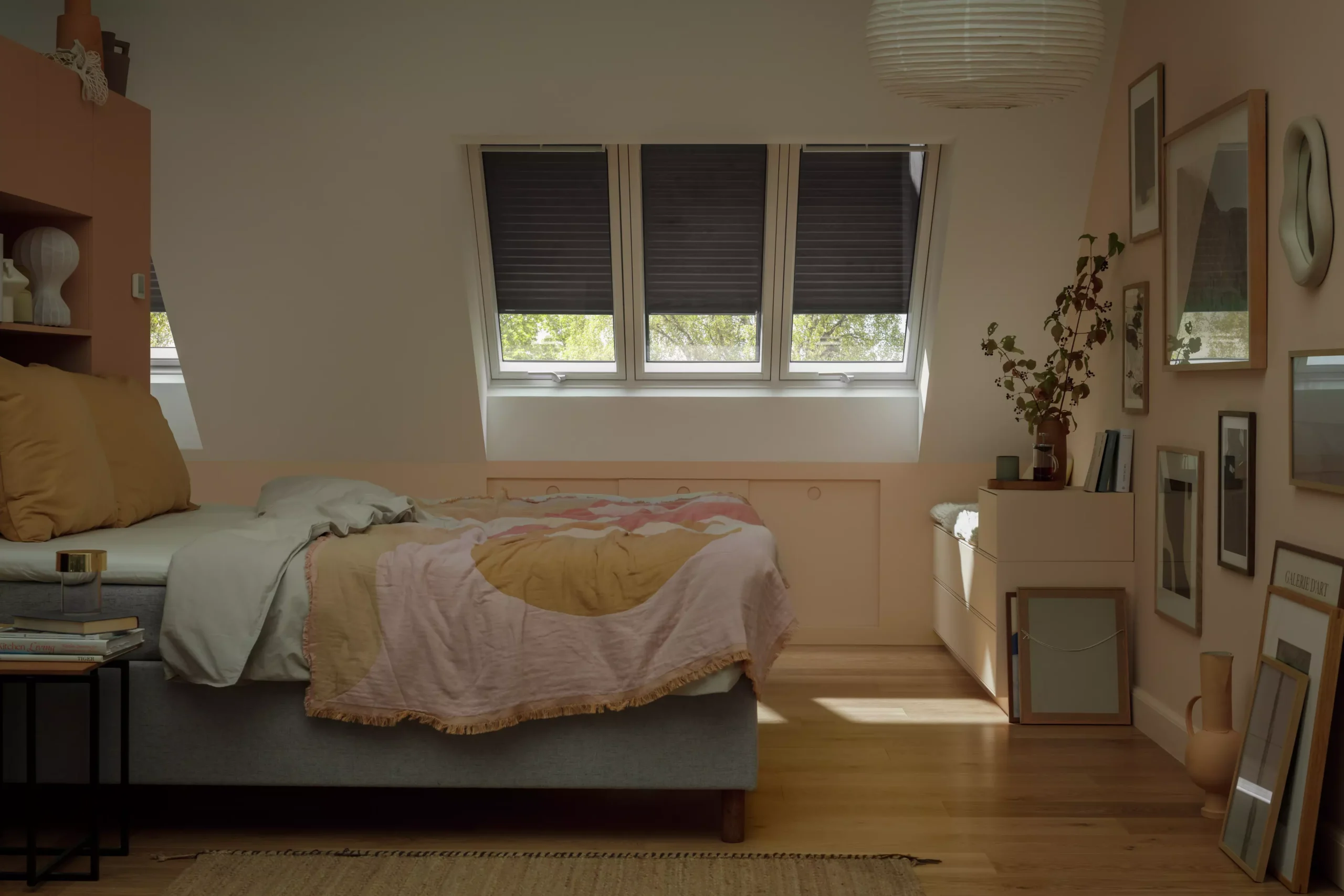 Hou het hele jaar de controle over het comfort in huis. VELUX rolluiken houden je huis comfortabel en koel, zelfs op de heetste dagen en nachten. Het is de ideale keuze voor mensen die het hele jaar door optimale bescherming willen, inclusief volledige verduistering en effectieve geluidsreductie voor een goede nachtrust en uitstekende isolatie voor de koudere maanden. Bovendien zorgen ze voor een extra niveau van bescherming tegen inbraak.