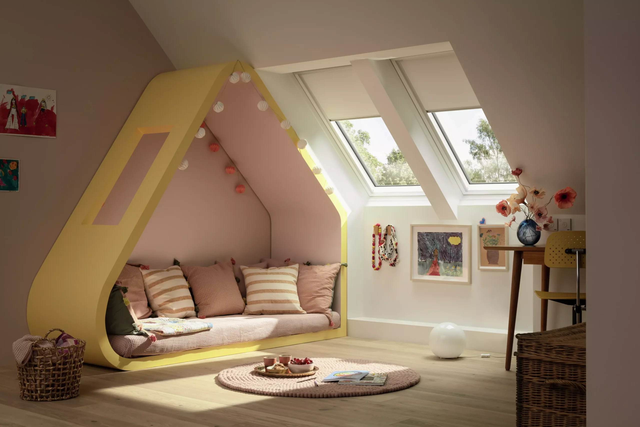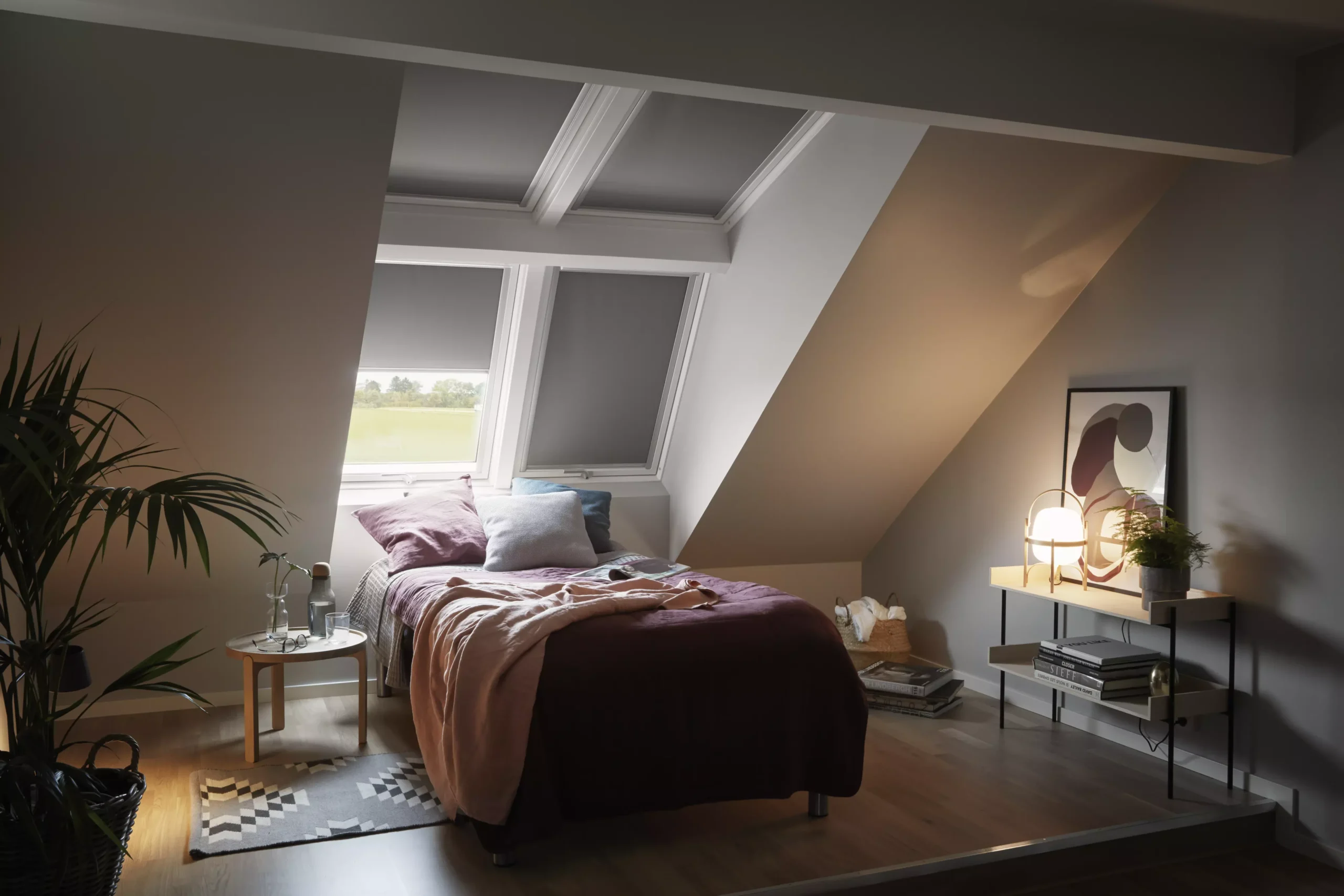 Kies voor een VELUX verduisterend rolgordijn voor een optimale verduistering, zowel overdag als ‘s nachts.
